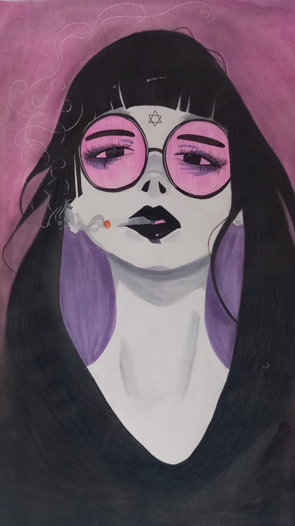 I am heavily inspired by Tim Burton when it comes to my Illustration art. I love using pastel colours and decorated faces. Illustration is something I like to do when I feel like taking a little break from Realism, or letting the child inside me loose and be all colourful and free.